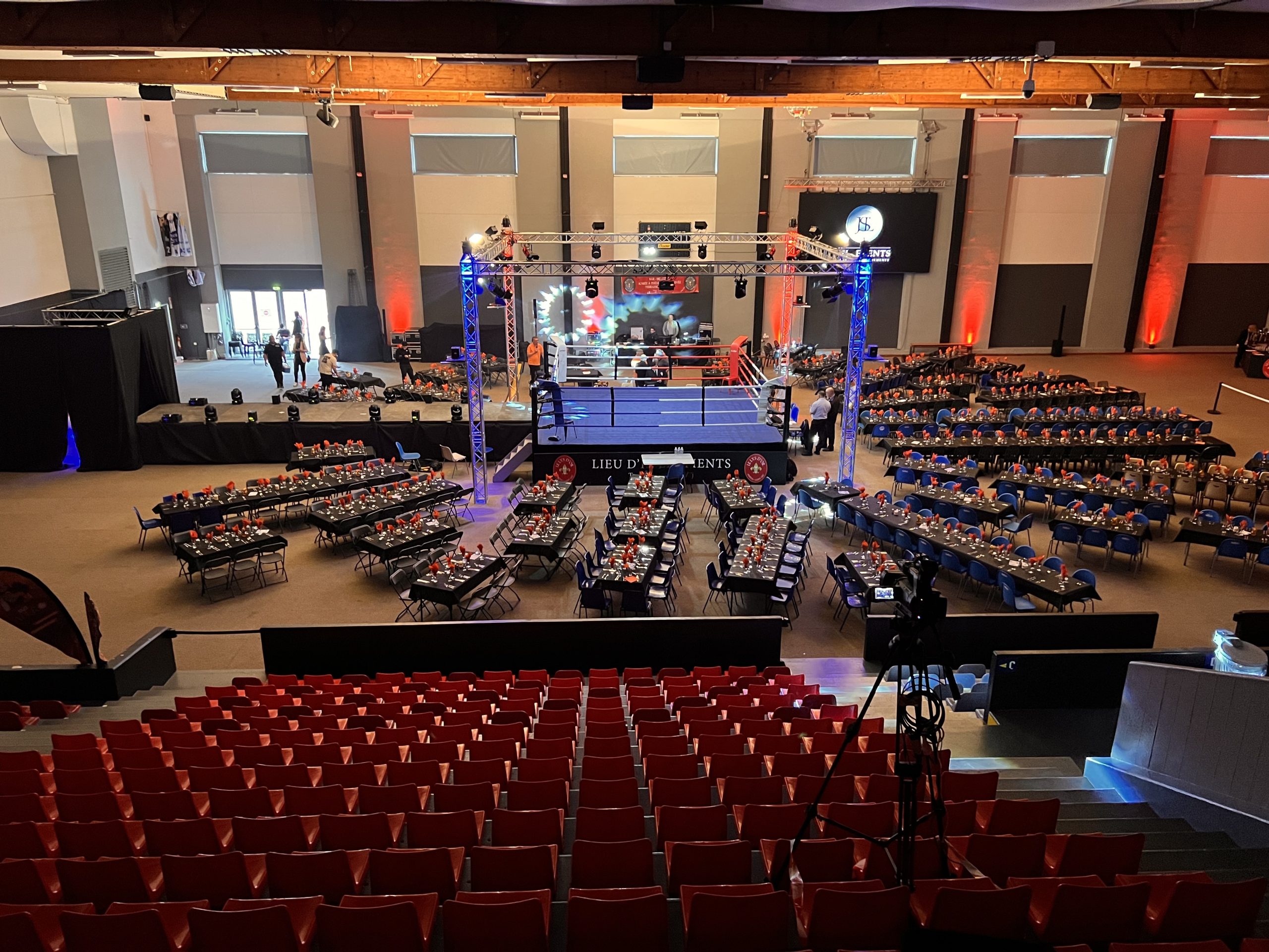 Avec des dimensions de 6x6m et une hauteur surélevée de 1m, ce ring garantit une visibilité optimale et une expérience immersive pour les spectateurs.